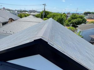 - スレート屋根で発生した釘浮きと棟板金の本体浮きに対応した棟板金交換工事の施工事例