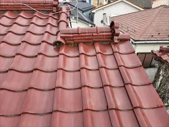 足立区花畑にて雨漏りに繋がる瓦屋根の漆喰の剥がれ、棟取り直し工事をご提案