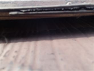 本日は、荒川区に棟板金の調査にお伺いいたしました。近隣の方に屋根が浮いていると言われ不安になりお問い合わせをいただきました。それでは調査に入りま す。棟板金を固定する貫板が屋根から浮いてしまっています。貫板は屋根に固定しています。経年劣化により固定が外れてしまい浮いてしまったと考えられま す。調査を続けます。全体的に釘浮きが出ています。棟板金は風の影響を受けやすく釘浮きを起こします。