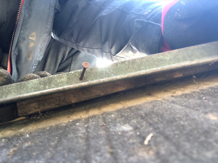 下地の貫板(木製)が経年劣化によって痩せてきたことにより、釘抜けが生じてしまった状態です。