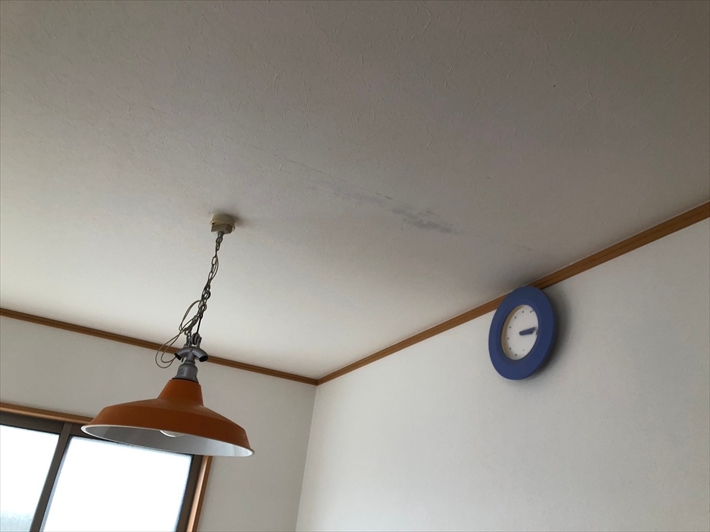 強い雨が続いてくると染みが広がってきてポタポタと雨漏りが生じるとのことでした、、、