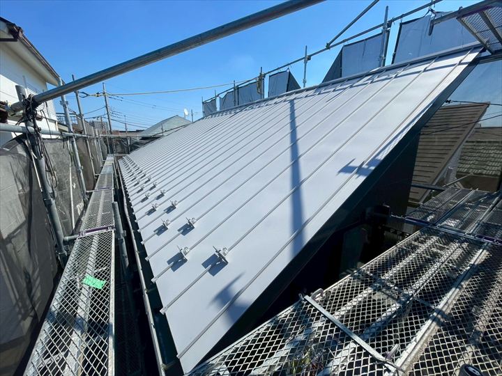アスファルトシングルからスーパーガルテクトへの屋根カバー工事事例