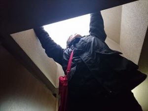 内部の採寸と窓と接するクロス部分へのおさまり方法を確認していきます。天窓サイズは既存メーカーと新規で設置するベルックス社製とではほんの少し大きさが異なりますので多少の加工は必要となりそうです。
