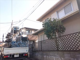 江戸川区のお客様、同じ江戸川区に軽量鉄骨造の建物をお持ちということで、前回の点検してまいりました。その結果、雨漏りもしていないため今回のメンテナンスは塗装を行うことになりました。塗装は15年ほど前に一度行った形跡があります。屋根材の状態は割れやヒビもなくそれほど傷んでおりません。築年数的にも次回のメンテナンス時には屋根カバー工法を検討していきます。現在は屋根材の縁切りは行われていない状況ですので、今回の屋根塗装では縁切りとタスペーサーも設置いたします。使用塗料はもはや当たり前となった遮熱塗料、ニッペサーモアイSIを使用します。