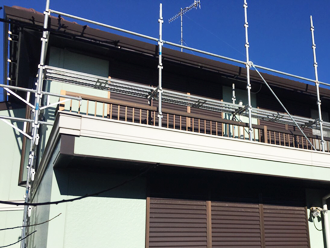今回は雨樋工事だけでなく、外壁塗装も一緒に実施するためそれに使用する足場を使って雨樋も交換しました(右写真)。