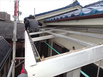 既存波板を外して新しいポリカ波板を敷設します