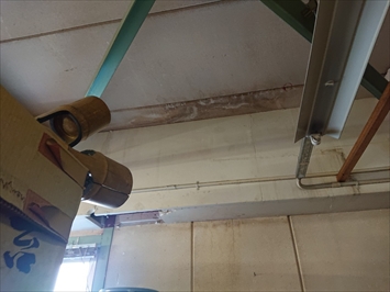 調布市国領町で雨漏りの原因調査に伺いました。倉庫の天井部分から雨が降るたびに雨漏りしてお困りになっており、雨漏りを止める事をご希望されています。天井と外壁の取り合い部分と構造材の鉄骨を伝わって雨水が流れ落ちていました。バケツが一杯になる程大量の雨水が落ちてくるそうなので、早急に対処する必要があります。