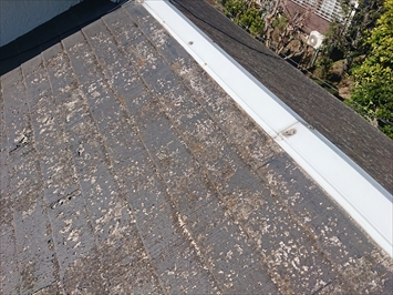 築40年を経過したスレート屋根は、過去に塗装工事でのメンテナンスをおこなったそうですが、大分劣化しています。