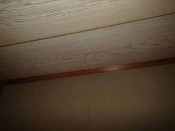 新型コロナ感染防止対策をとり、お客様に案内していただきながら雨漏りを起こしている部屋の調査を進めると、お客様も気が付いていなかった雨漏り跡が随所にみられることが分かりました。この雨漏りに関してはお客様も気が付いていなかったこともありいつ発生したものかは判断が難しいところです。