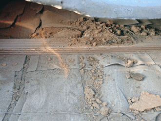 瓦の下葺き材(防水紙)に使われていたのは、薄い木の板でした。これを土居葺き(トントン葺き)といって、屋根の土台でもある野地板の上に「さわら」または「杉」などの薄板を竹釘(たけくぎ)で打ち付けるものです。
