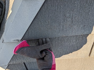 一部分スレートが割れてしまい、スレートを止めている釘が露出してしまっておりました。このまま放置してしまいますと釘の隙間から雨水が侵入する恐れがあります。スレートの釘は野地板まで貫通しておりますのでここから侵入してしまった雨水は小屋裏に直接入っていき、野地板の劣化を進めてしまいます。