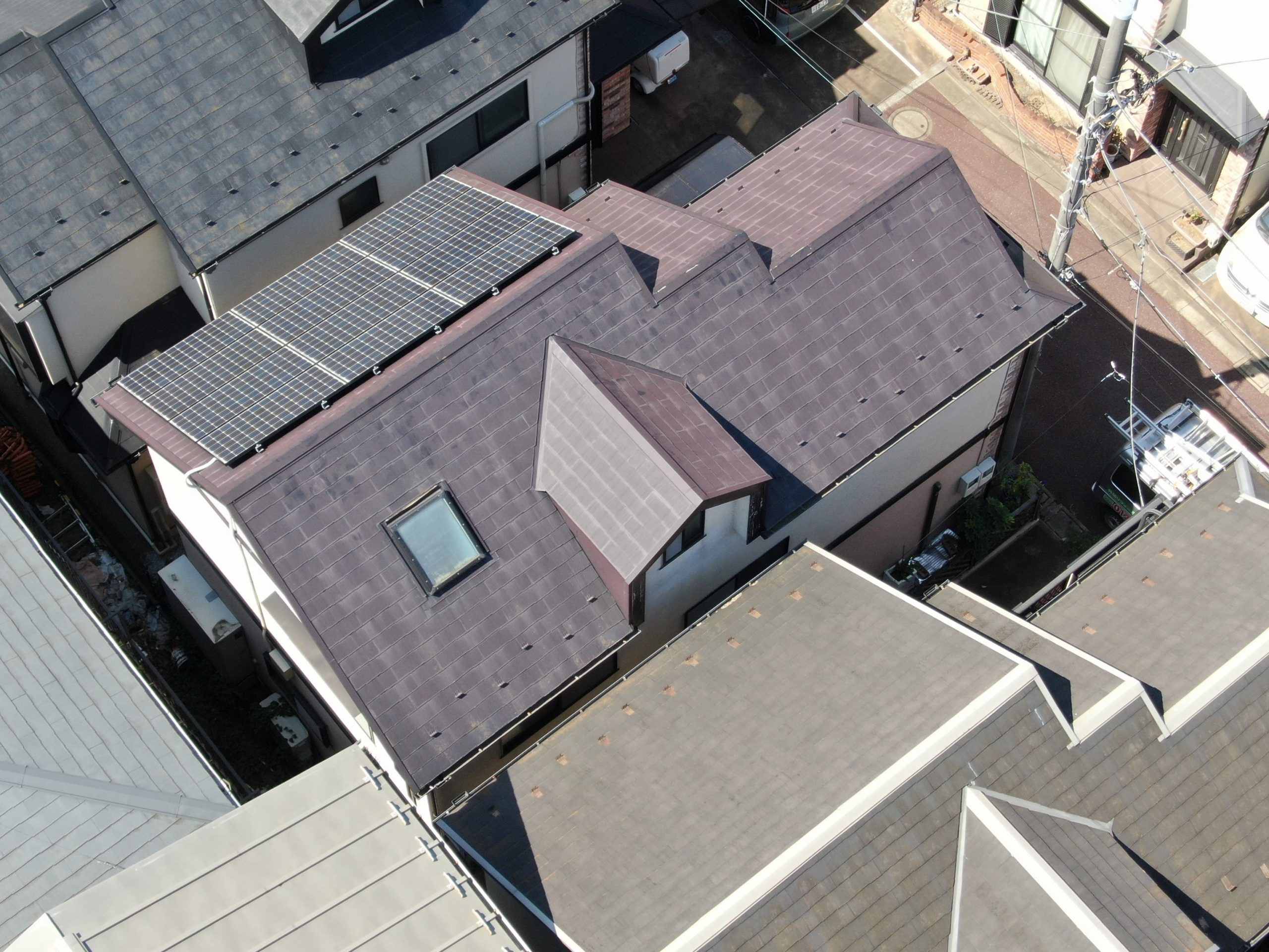 - 江戸川区平井にて劣化した屋根の塗装工事を実施!大日本塗料エコクールスマイルF(アーモンドレッド)を使用しました。