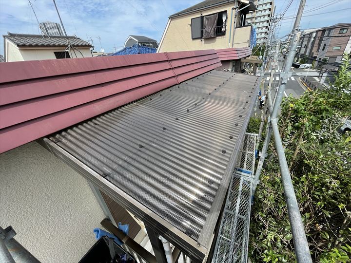 - 杉並区久我山にて劣化した波板の交換のご相談をいただき、ポリカーボネート製波板への交換工事を実施しました