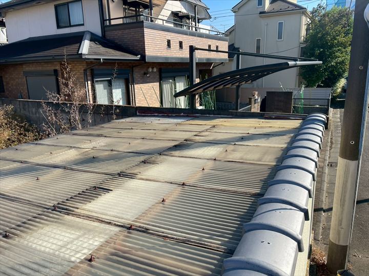 - 世田谷区若林にて劣化した塩ビ波板をポリカーボネート製の波板へ交換工事をおこないました!