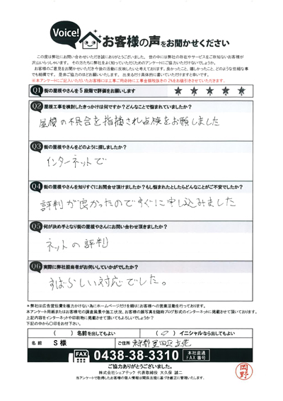 - 棟板金補強工事をご提案!江戸川区一之江のS様にアンケートにご協力いただきました