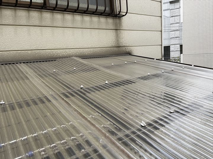 調査の様子です。お問い合わせのきっかけになりましたベランダ屋根の様子です。