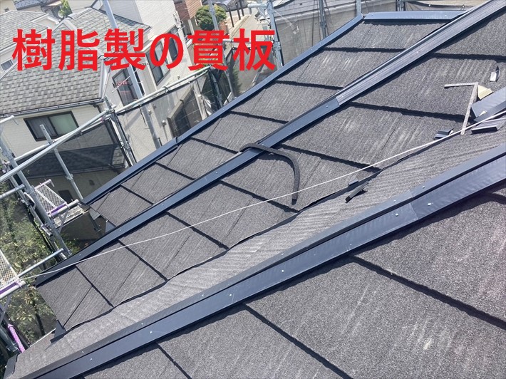 元々は木製の貫板が使用されていましたが、新しい貫板は樹脂製の物を使用します。樹脂製の貫板は木の様に雨水などによって腐食する心配はありませんし、固定も釘ではなくビスを使用しますので外れたりする心配も無くなり安心です。