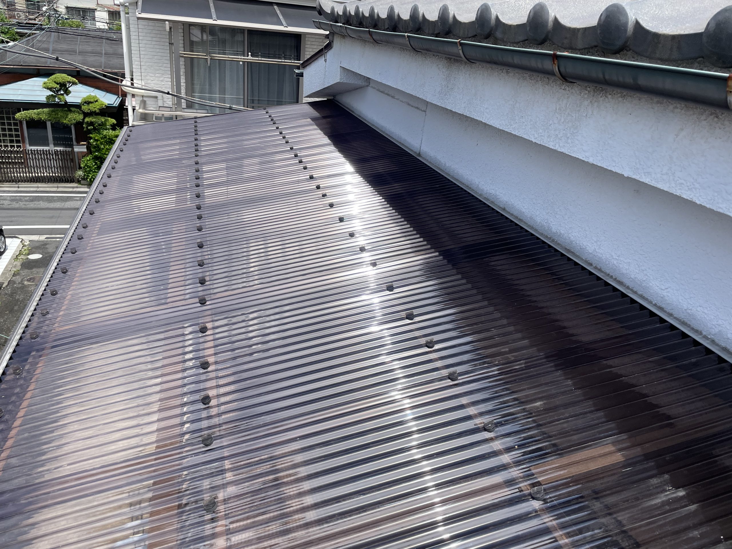 今回のお住まいでも、波板全体に老朽化が見られたため、新しい波板への交換工事をご提案いたしました。