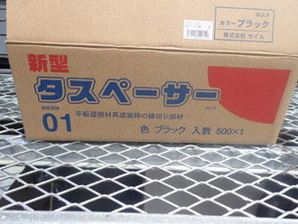 下塗りが終わりましたら、スレート屋根塗装に必須の縁切り作業を行います。タスペーサーをスレートとスレートの重なり部分に挟み込み、適度な隙間を作ります。この隙間が雨水の排出口や蒸気の通り道となることによって、雨漏りや結露を防止するのです。