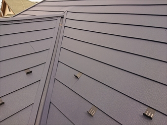色褪せやジョイント部分の固定不具合、棟板金の浮きなどもなく、工事後と同じ状態が保たれておりました。耐久性の高い材料でしっかりとした工事をおこなっておりますので、ご安心いただければと思います。今後は隔年点検になりますので、次回は2年後に点検にお伺いいたします。