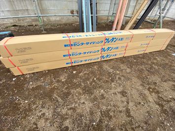 工事で使用する材料、色の打合せを行っていきました。現在、貼られている金属サイデイングのメーカーなどが全くわからない状態ですので、寸法から近似の物を選んでいきます。この件に関してはお客様にもご理解いただいております。一番近い物という事で、金属サイデイングはニチハのセンターサイディング ウレタン(A型)という商材を使う事になりました。工事も途中から金属サイデイングを貼っていくことになるので、通常とはおさめ方が異なってきます。既存金属サイデイングとの取り合い部分には縦貼りサイディング用のT型ジョイナーを設置することで雨仕舞をすることになりました。