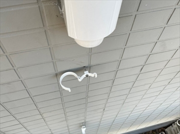 取り付け金具を設置し終わりましたら軒樋を吊って集水器の取り付けを行います。