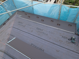 防水紙には様々な種類や機能性を持つものがありますが、今回は田島ルーフィング株式会社のタディスセルフを使用しました。