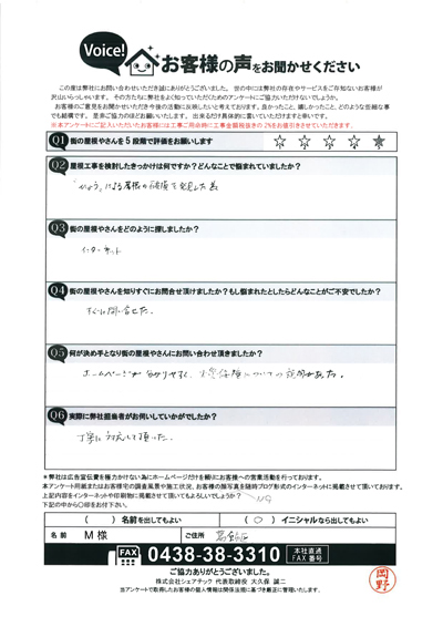 調査のご報告をしたところ、屋根葺き替え工事をご希望でしたので耐久性に優れ、風にも強いアイジー工業のスーパーガルテクトでの屋根葺き替え工事をご提案したところ、工事のご依頼をいただきました。