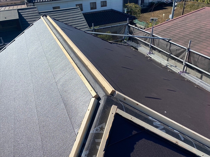 今回使用したニューライナールーフィングという防水紙も十分に耐久性のあるものなので長年ご安心いただける仕様になっております。